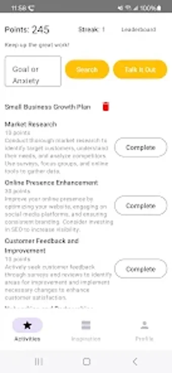 See Breakthrough is een innovatief productiviteitsprogramma ontworpen voor Android-gebruikers. Het combineert gamificatie met cognitieve gedragstherapie (CGT) om gebruikers te helpen bij het stellen en behalen van doelen terwijl ze hun angsten overwinnen. De applicatie biedt functies zoals een doeltracker, een streak-teller en de mogelijkheid om voortgang vast te leggen via foto’s en video’s. Daarnaast kunnen gebruikers deelnemen aan exposure-missies, waardoor ze stap voor stap hun angsten onder ogen zien met wetenschappelijk onderbouwde begeleiding.